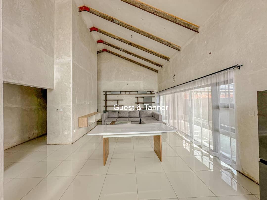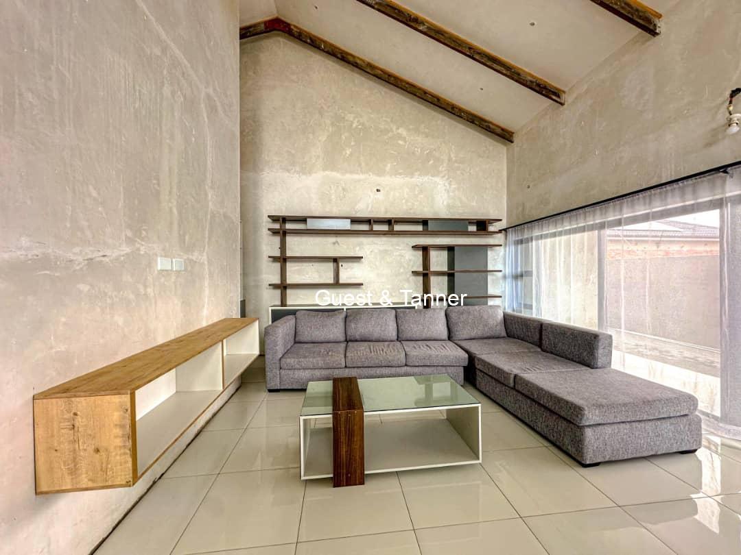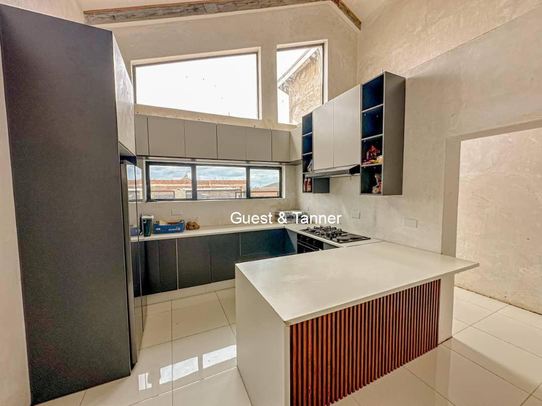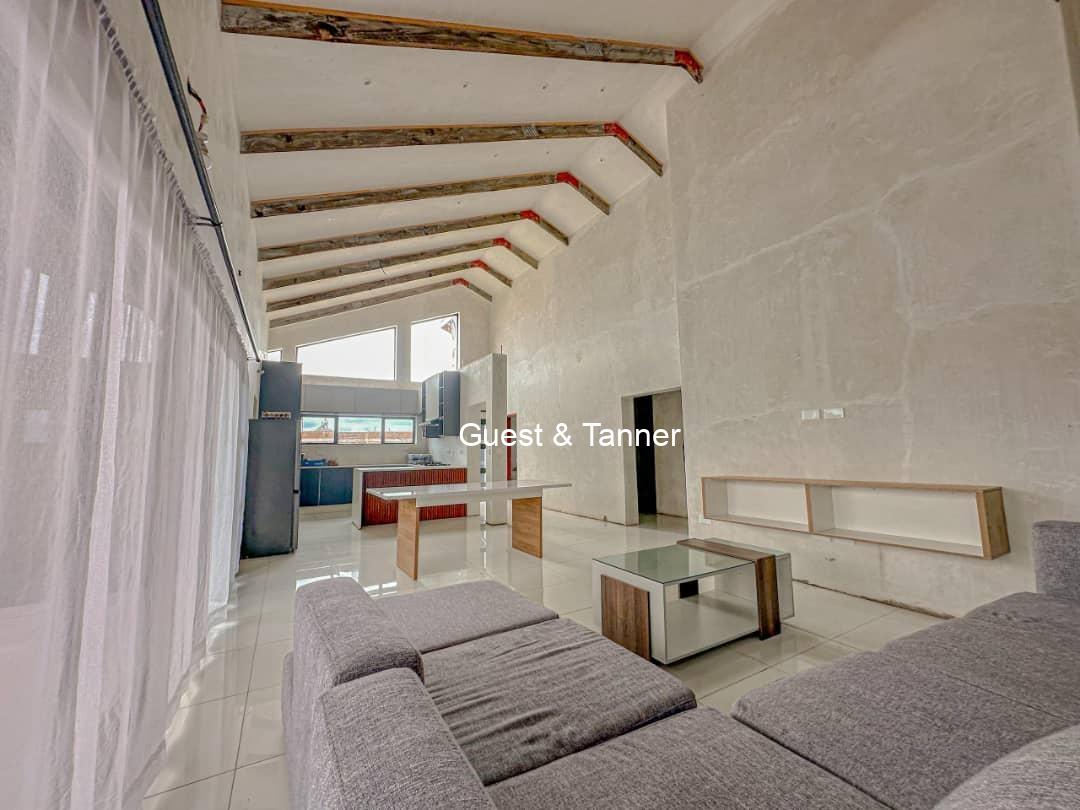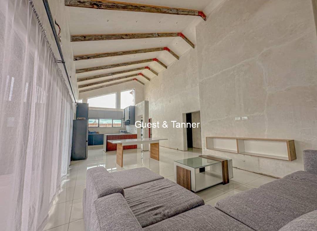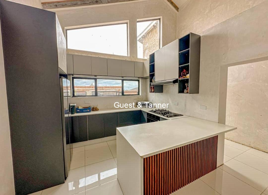 The thoughtfully designed layout features an open-plan living area that seamlessly connects the lounge, dining space, and kitchen. High ceilings and large windows invite natural light, creating a warm and airy atmosphere.