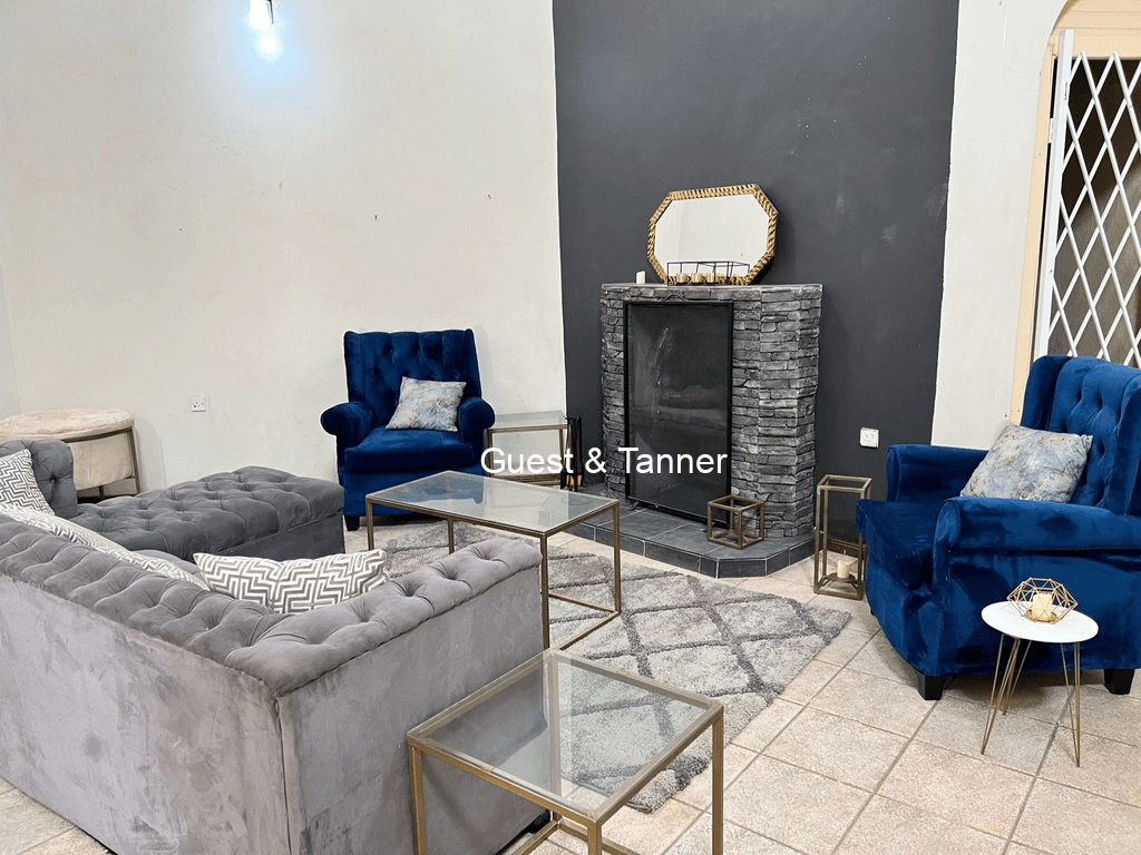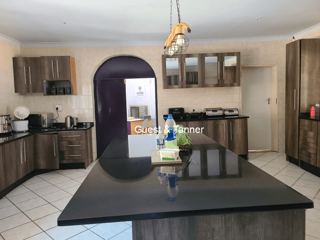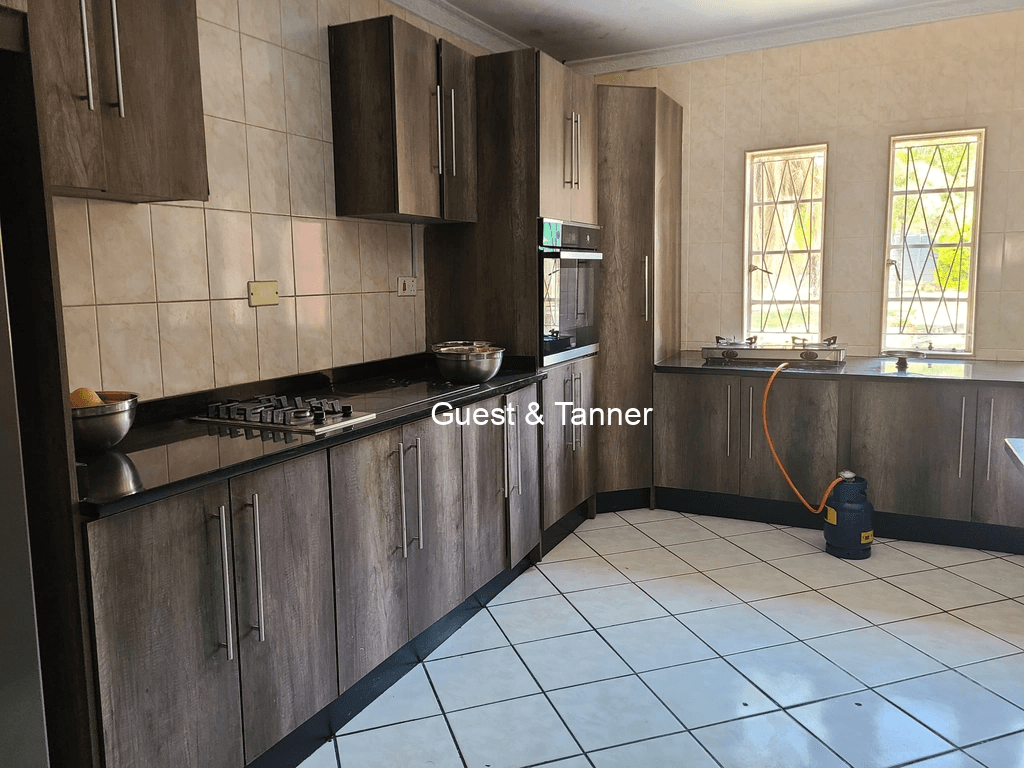 The house’s interior is bright and airy, with large windows that let in plenty of natural light. They is a large kitchen with beautiful cupboards and an e-land.There is a stand alone toilet and a common bath and toilet.The lounge is a great place to relax and entertain guests. There is also a huge dining room that that leads to a small bar area.