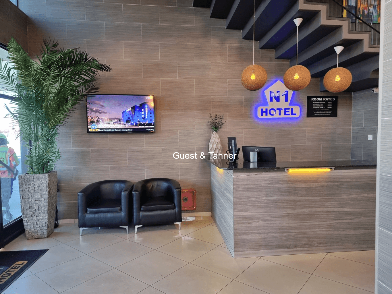 Each floor comprises of 8 identical rooms all with en-suite, classified into four categories, [Standard rooms (4), Deluxe rooms (2), Twin rooms (1) & Superior rooms (1)]. All superior & deluxe rooms have air condition. In addition, this property also features reception area; a delightful restaurant with a dedicated kitchen, storeroom and a small canteen; 3 offices, linen room, boardroom and outside ablution facilities (Gents and Ladies) all on ground floor. For fire prevention, all floors on the property are equipped with a firehose and fire extinguishers. The property is fully installed with CCTV cameras for enhanced security system. This property is a going concern (sold as is).
